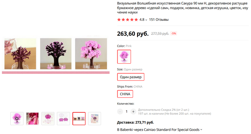 Собственно, к чему это я? А я на Aliexpress обнаружил вот такую заготовку для выращивания искусственной кристаллической сакуры.