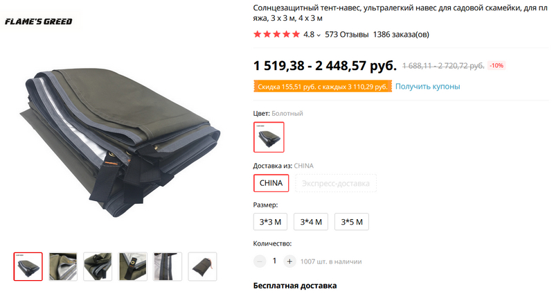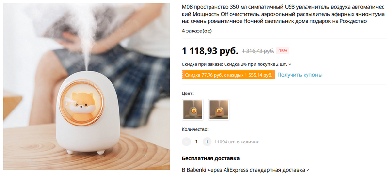 - Купоном продавца (берется на странице с товаром) на – 2$