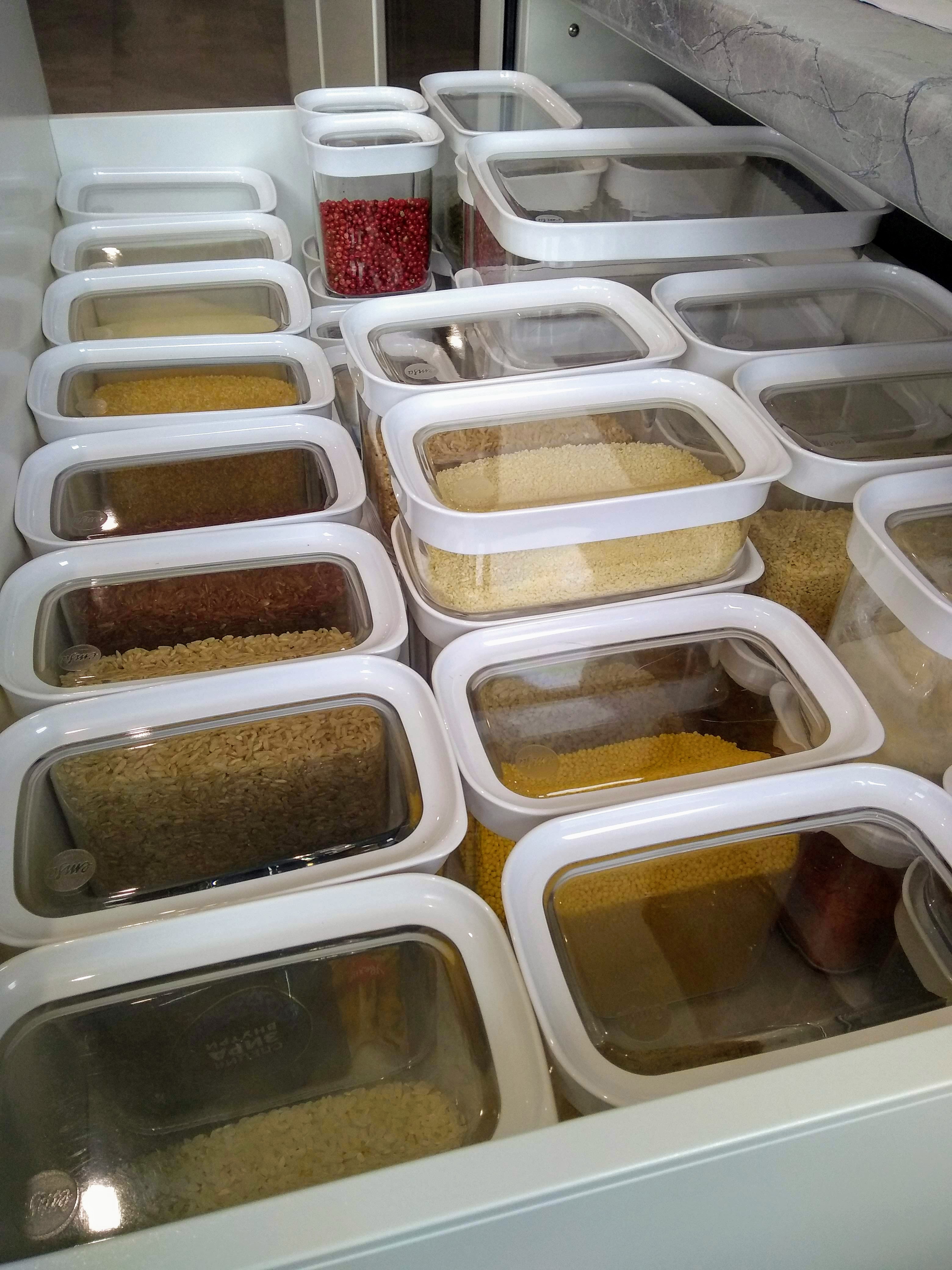 Уже несколько раз здесь возникал вопрос о хранении сыпучих продуктов. По моему личному мнению в идеале их нужно хранить именно в таких банках. Цена сейчас слегка гхм.. подросла. Мне с купонами/распродажа и литровая емкость обходилась примерно в 4$. Да, они стеклянные, поэтому бьются, но это самое правильное и экологичное хранение, да и удобное, и красивое.