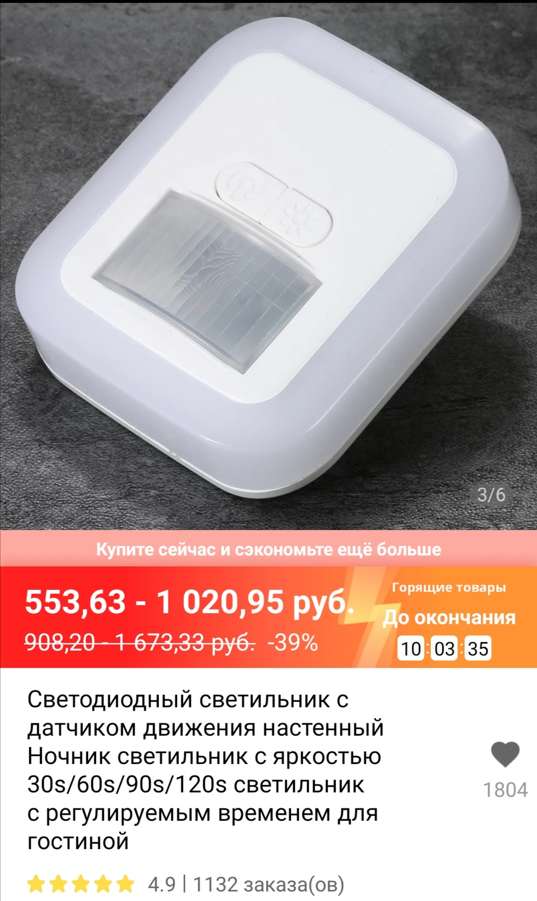 Несколько градаций света и задержки выключения. Исключительно удобный. Продаётся поштучно или парами, цена за 1 шт около 500 руб.