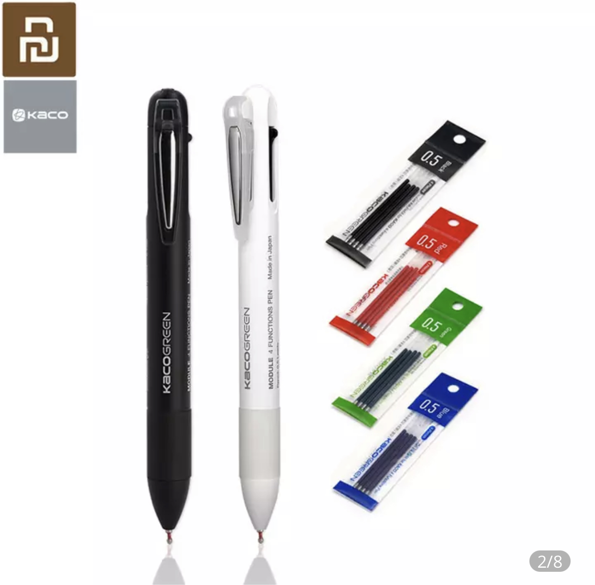 2 вариант трёхцветная гелевая с механическим карандашом и резинкой от дочки Xiaomi. Запасные стержни и грифели там же.