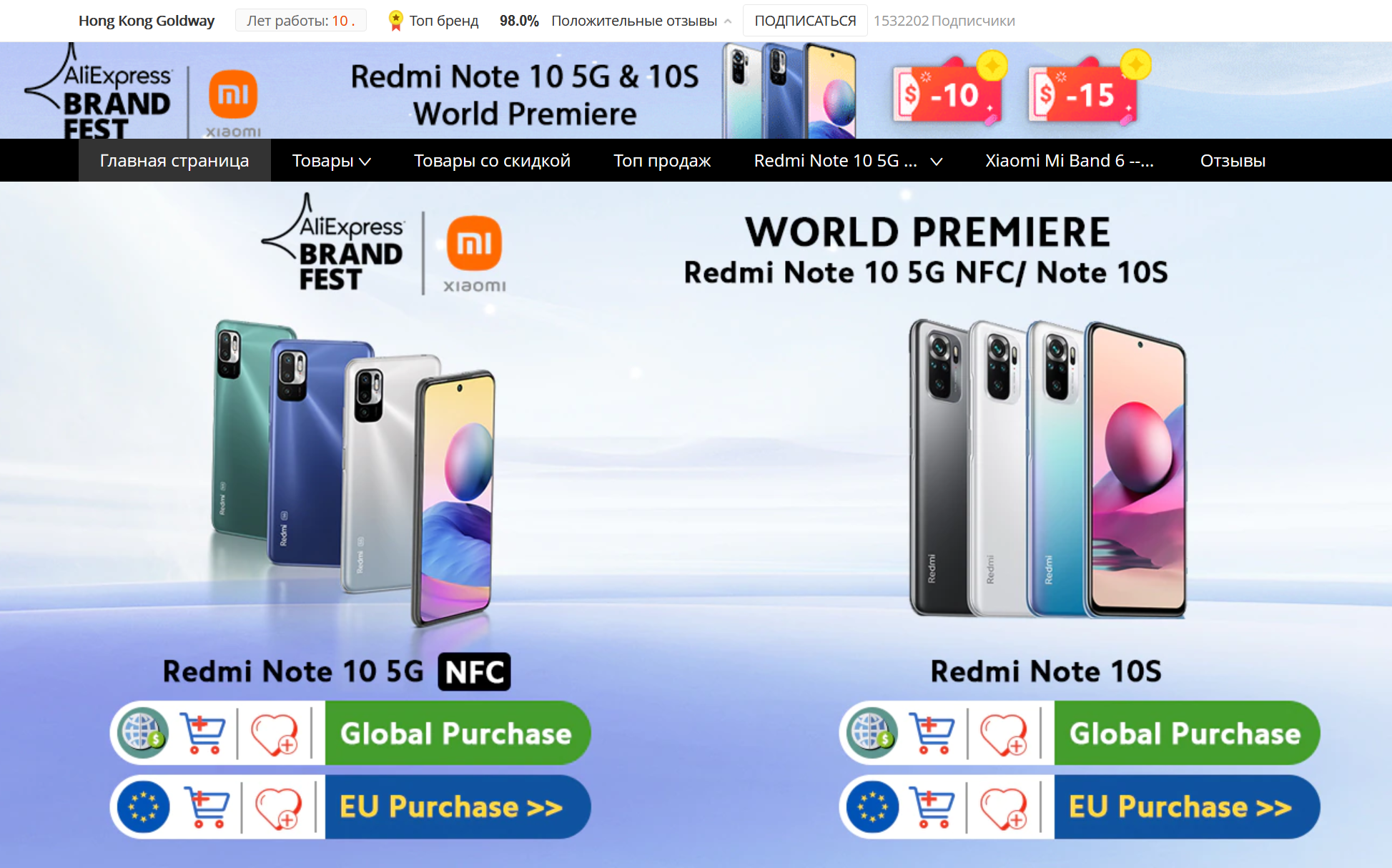 - Xiaomi Redmi Note 10S - $199 6GB+64Gb и $219 6GB+128Gb