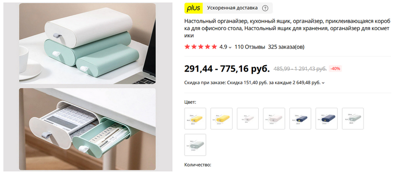 Пластиковые органайзеры различных цветов и размеров, которые можно держать на столе, а можно приклеивать двухсторонним скотчем к нижней крышке стола, расширяя таким образом фунциональность. Я себе пару заказал: у меня рабочий стол из ИКЕА ящичков не имеет, а они там нужны.