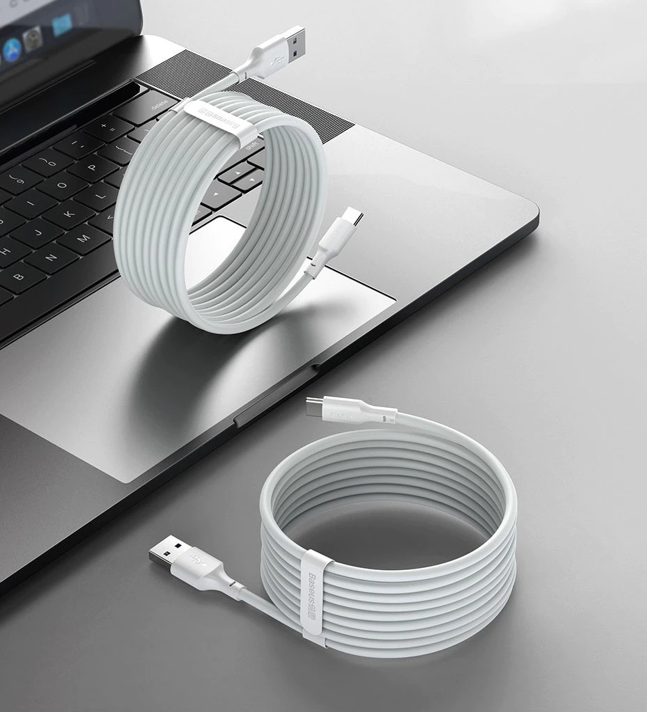 На выбор два цвета - черный и белый, в комплекте кабель Type-C - Type-C для быстрой зарядки.