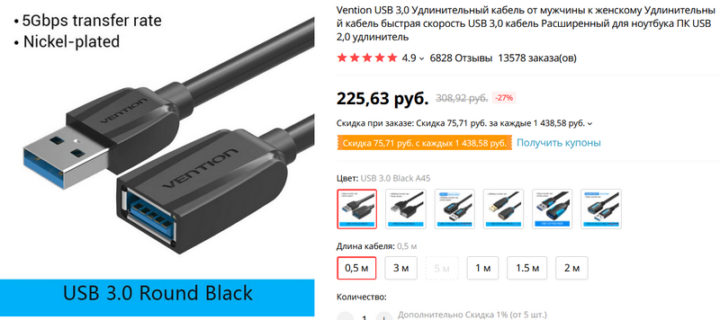 Вот здесь хороший выбор качественных удлинителей для USB 2.0 и USB 3.0 различных размеров: от половины метра до двух метров.