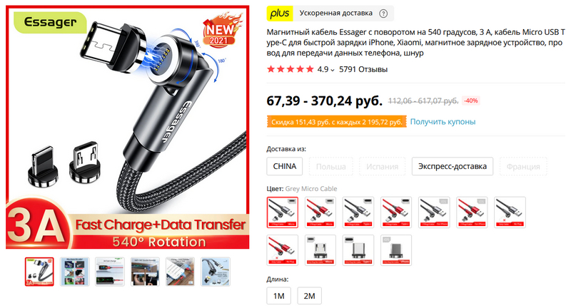 Кабели с вращающейся магнитной головкой длиной 1 и 2 метра. Из характерных особенностей - поддерживают быструю зарядку, а главное - поддерживают передачу данных. (Кабели с магнитной головкой далеко не все поддерживают передачу данных.)