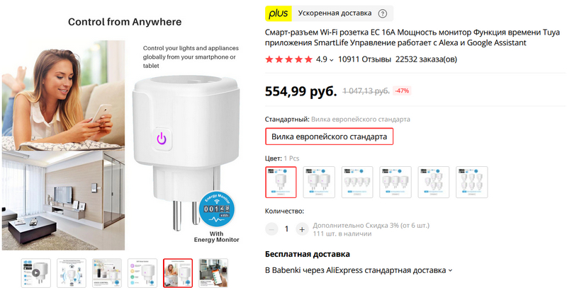 Продвинутая умная розетка, управляемая откуда угодно через приложение. Поддерживает Google Assistant и Amazon Alexa, ведет мониторинг потребленной энергии, позволяет задавать включение и выключение по расписанию.