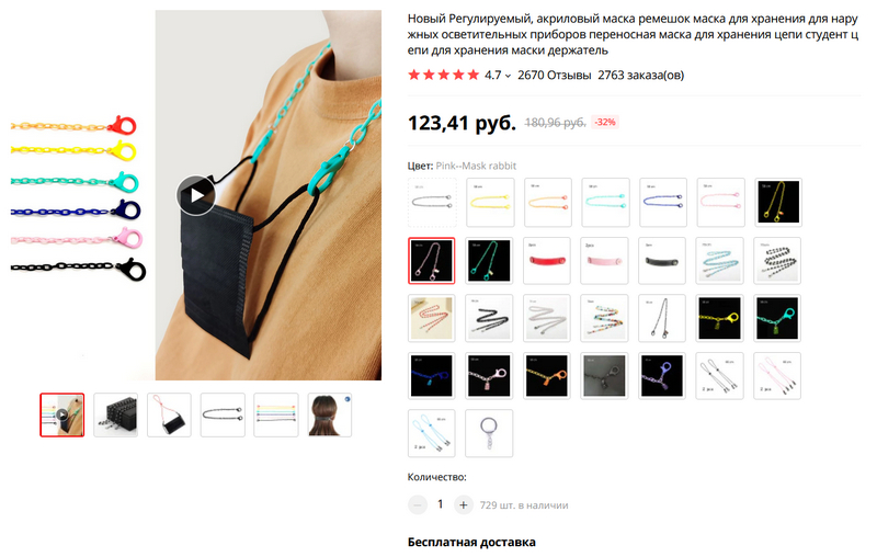 Новый модный аксессуар в лучших домах Парижа и Лондона - держатель для маски. Различных цветов. Ну, кстати, удобная штука для стран, где требуется надевать маску при входе в какое-нибудь помещение, но не требуется носить маску на улице. Чтобы не пихать ее в сумку и не доставать потом. А так снял - она и повисла на держателе, трепыхаясь на ветру.