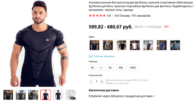 Компрессионная быстросохнущая спортивная футболка различных цветов и размеров. Свой размер проверяйте по табличке, она там есть. Мышцы к футболке не прилагаются, мышцы придется качать самостоятельно.