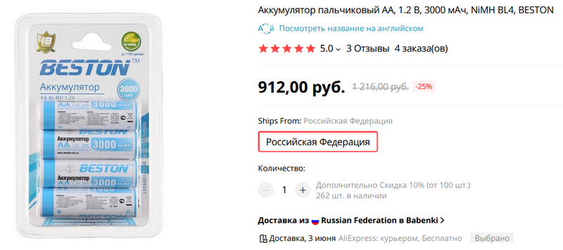 Никель-металлгидридные аккумуляторы АА с емкостью 3000 мА·ч с доставкой из России.