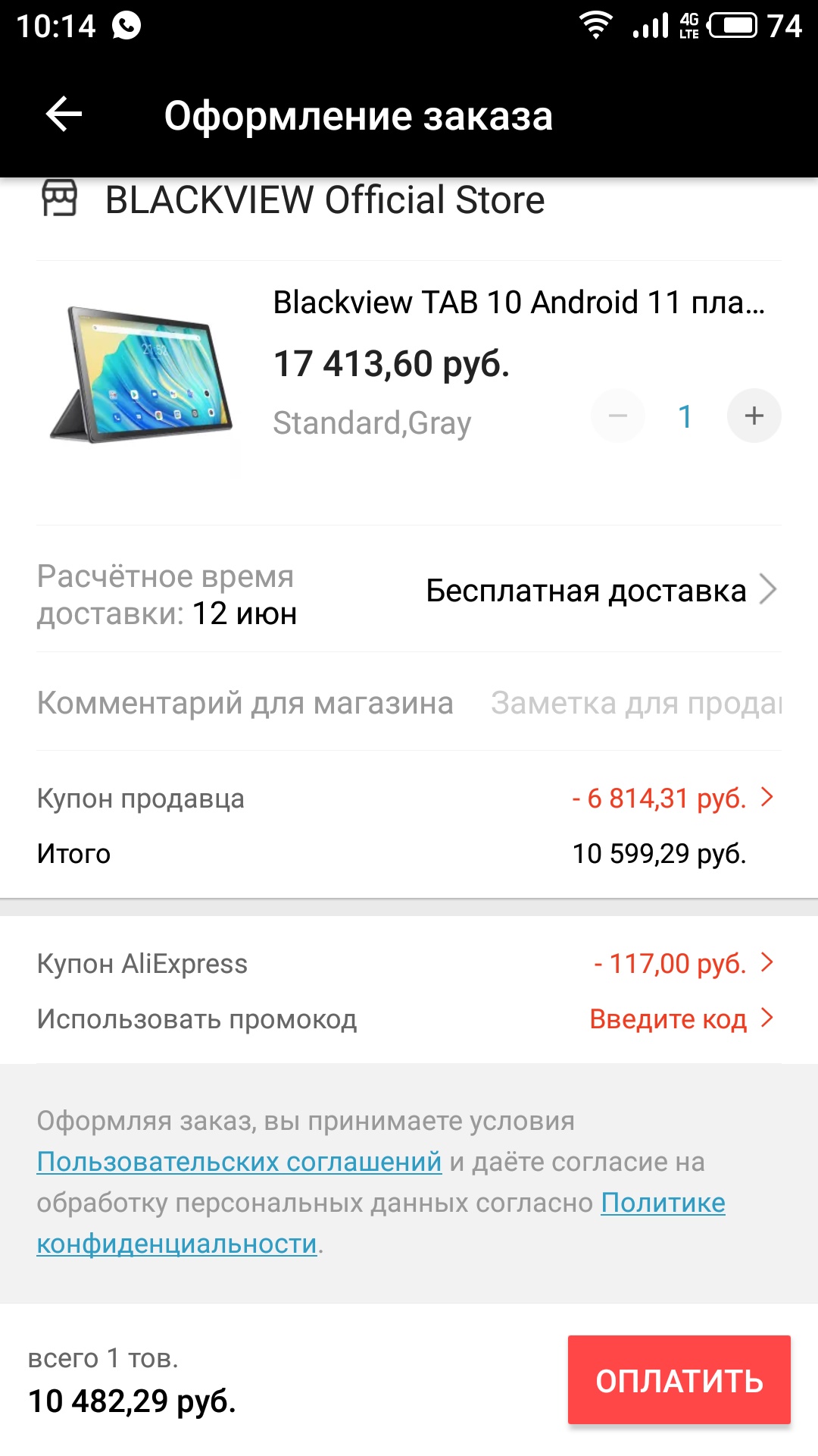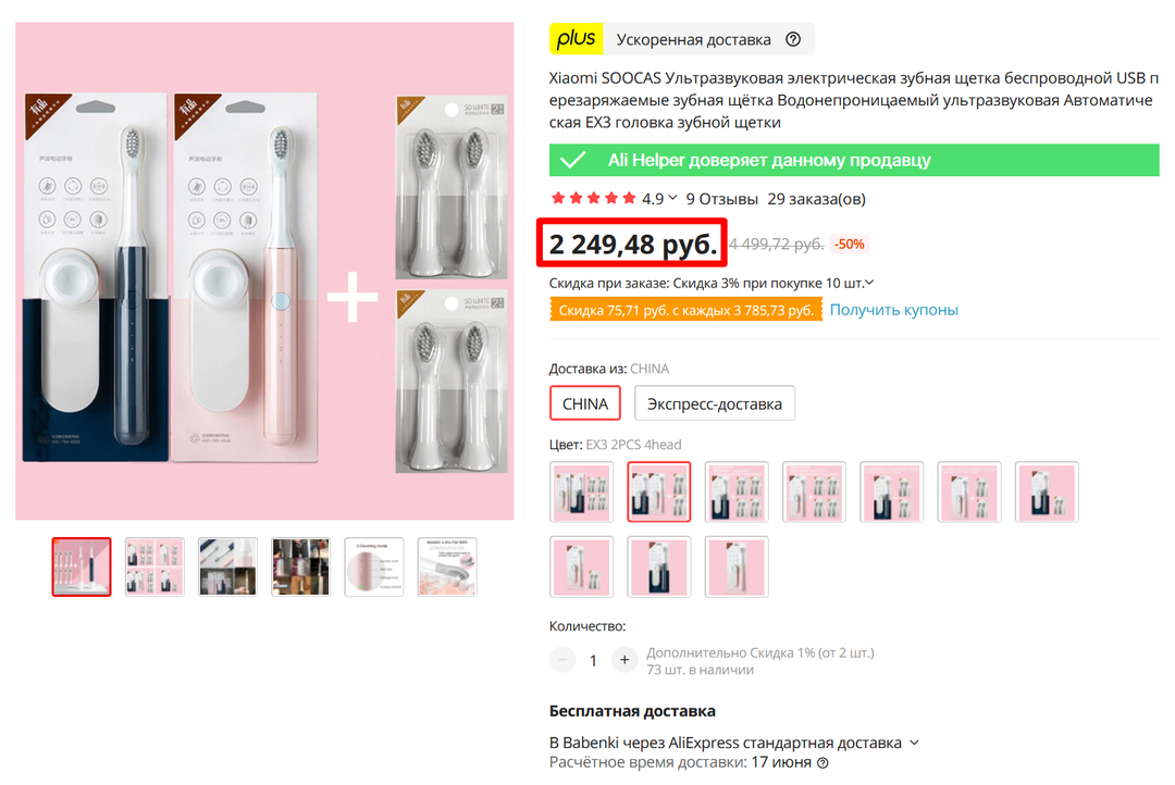 - Купоном продавца (берется на странице с товаром) – 227,14 руб.