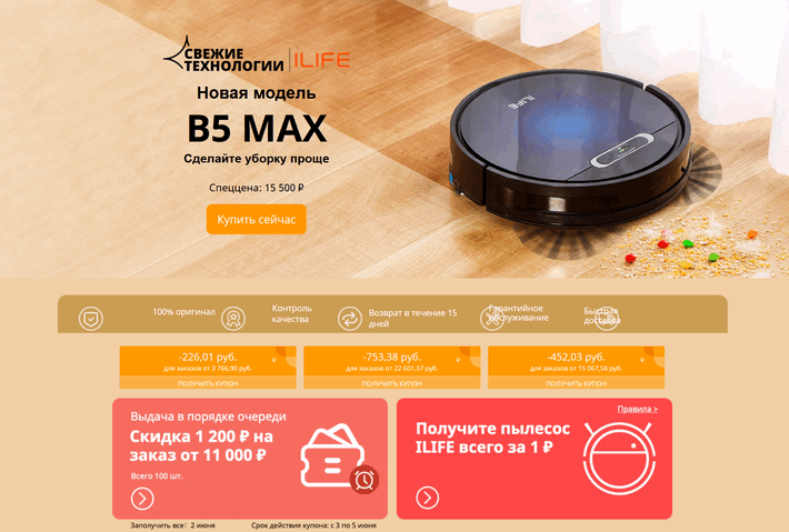 Возможность получить пылесос ILIFE B5 Max за 1 рубль