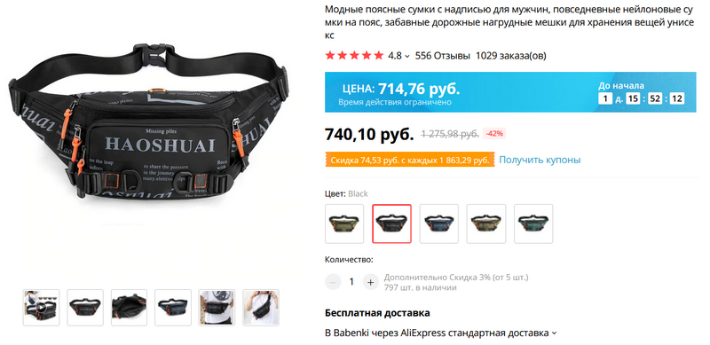 - Купоном продавца (берется на странице с товаром) – 74,53 руб.