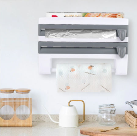 Недавно наткнулась на такой держатель для полотенец, пищевой пленки, бумаги для запекания и т.д. Во-первых, можно все это добро удобно разместить, а, во-вторых, там есть встроенный удобный резак. На видео отлично видно, как все это работает. Удобно!