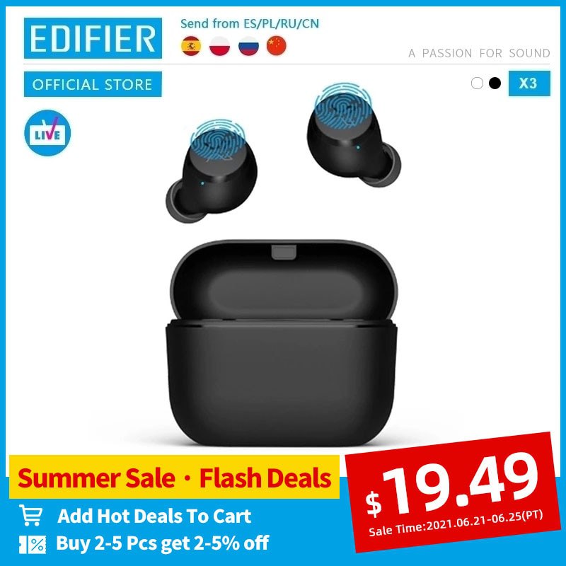 У меня сегодня беспроводные наушники EDIFIER X3. Сразу скажу, я их не покупала, а выиграла в генераторе. Но на распродаже цена на них будет довольно привлекательная. Главным минусом для меня является отсутствие индикации заряда на чехле. В остальном - просто отличнейшие наушники. Звук чистый, громкий, сравнимый с Tronsmartами или Ankerами. Подключаются по AptX. Главное преимущество для меня - время работы - практически полный световой день. Я почти всегда с одним наушником хожу и практически постоянно с включенной аудиокнигой, при этом их реально хватает надольше, чем все предыдущие наушники. Сенсор чувствительный, но срабатывает четко - одно касание - пауза, длинное касание - вызов помощника, двойное касание - следующий/предыдущий трек. При звонке хорошо слышно собеседника и он слышит лучше, чем в тех же Tronsmartах. Сами наушники лёгкие, небольшие, довольно удобные. В общем, стоит обратить внимание.