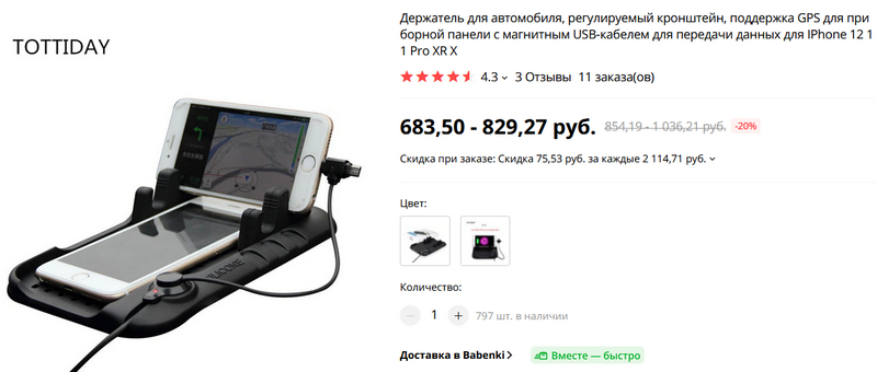 Держатель для смартфона, устанавливаемый на торпедо. Рекомендовали в комментариях, сказали, что очень удобный.