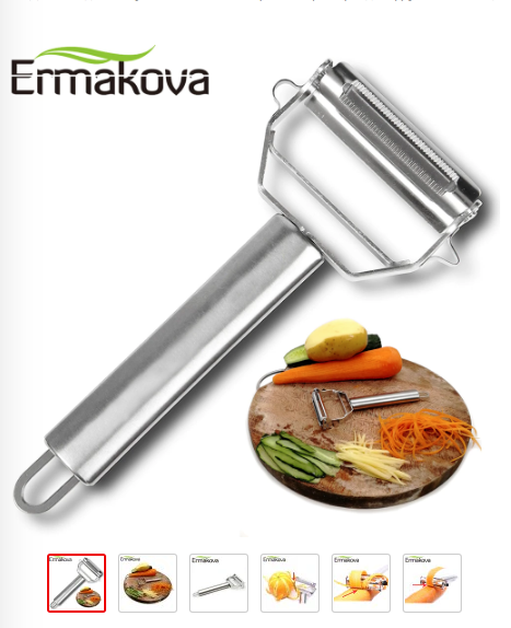 Хочу порекомендовать вот такую шинковку для овощей. Я ее, правда, не на али покупал, а на соседнем рынке и вышла она дешевле, но по виду это тоже самое. Ее особенность - зубчатое лезвие, благодаря чему она не тупится и хорошо режет. Шинкует она довольно тонко, но я ее и для квашеной и для тушеной капусты использую - как по мне, идеальная толщина. Молодая капуста, может, для нее нежновата, но обычная капуста хорошо получается. С обратной стороны - нож а ля "морковка по-корейски". На али она много у кого есть, может, дешевле найдете (у этого продавца два варианта, я говорю про тот, что по-дороже).