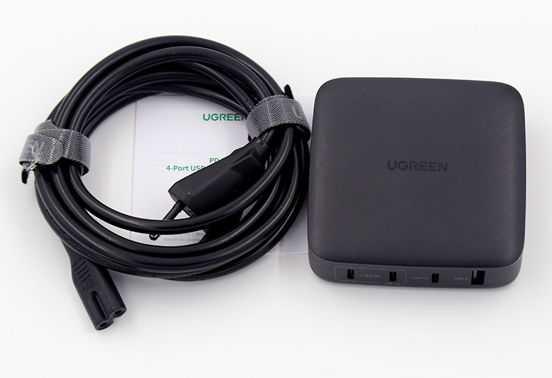 И к нему шел вот такой очень качественный двухметровый кабель UGREEN для ноутбука, поддерживающий 100 ватт. Его, конечно, можно купить отдельно, причем разных размеров.