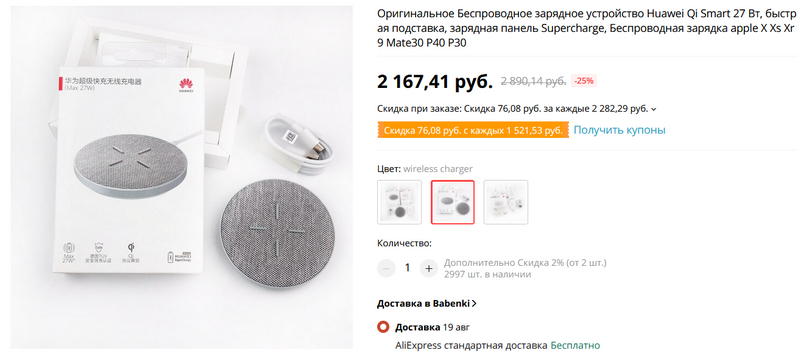 Наконец-то нашел реально быструю беспроводную зарядку - на 27 ватт. Есть разные варианты комплектации: просто зарядка с кабелем, зарядка с кабелем и соответствующим адаптером.