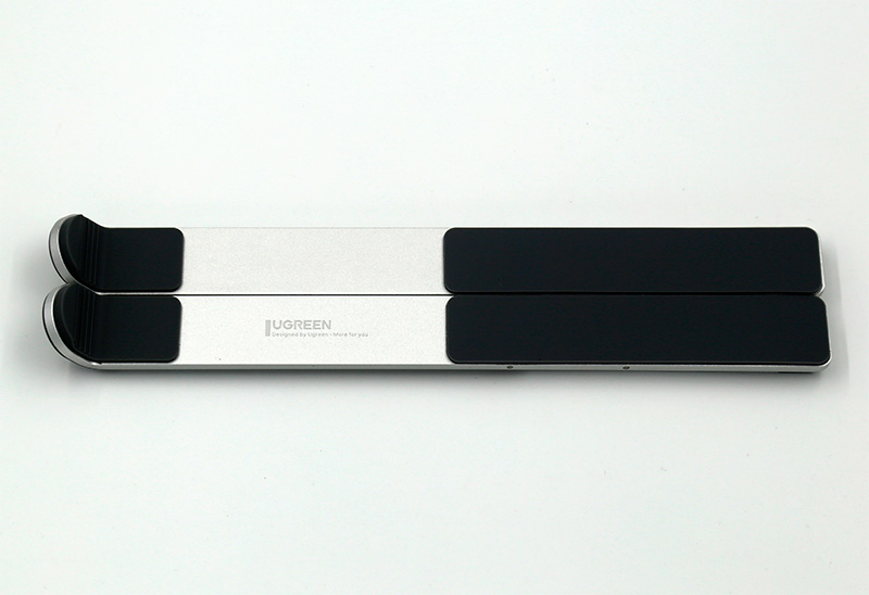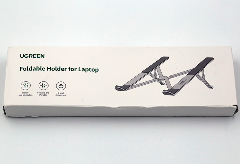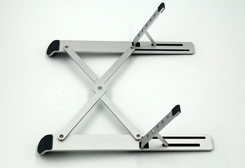 В разложенном виде. Ножки регулируют высоту подставки, имеют пять положений.