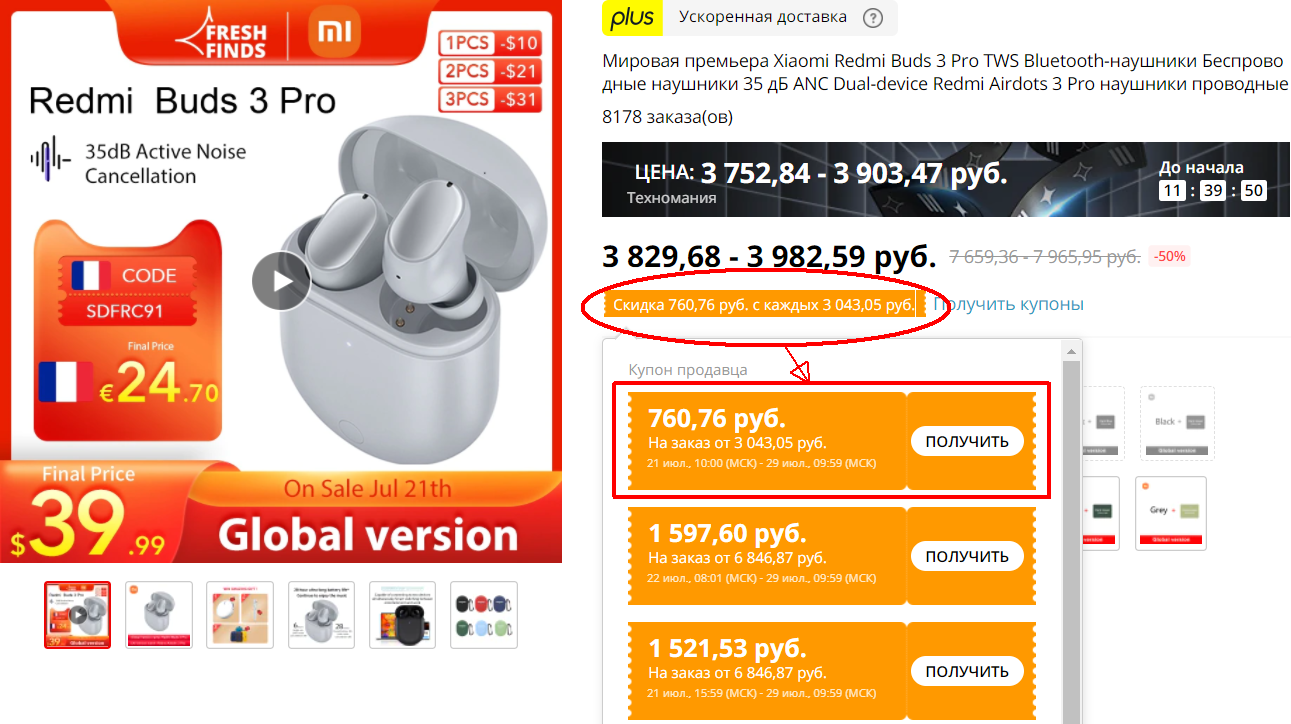 - Купоном продавца (берется на странице с товаром) – 760,76 руб.