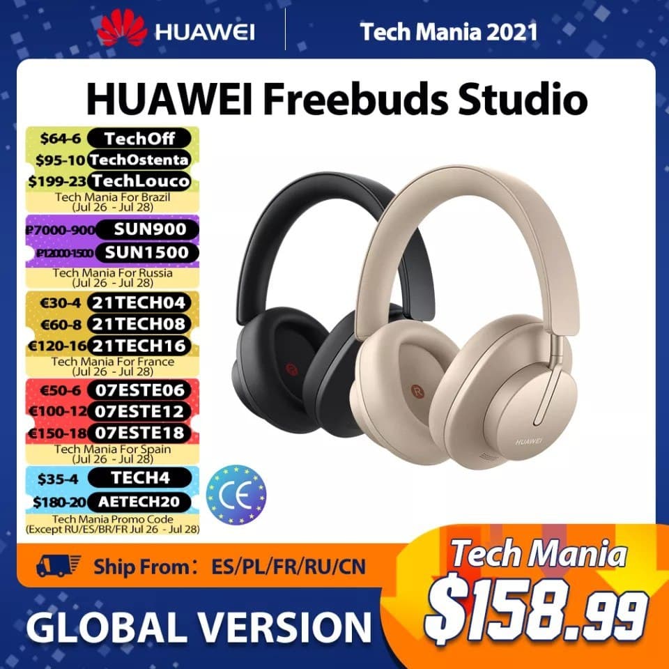 Супер скидка на флагманские полноразмерные беспроводные наушники с активным шумоподавлением Huawei Freebuds Studio.