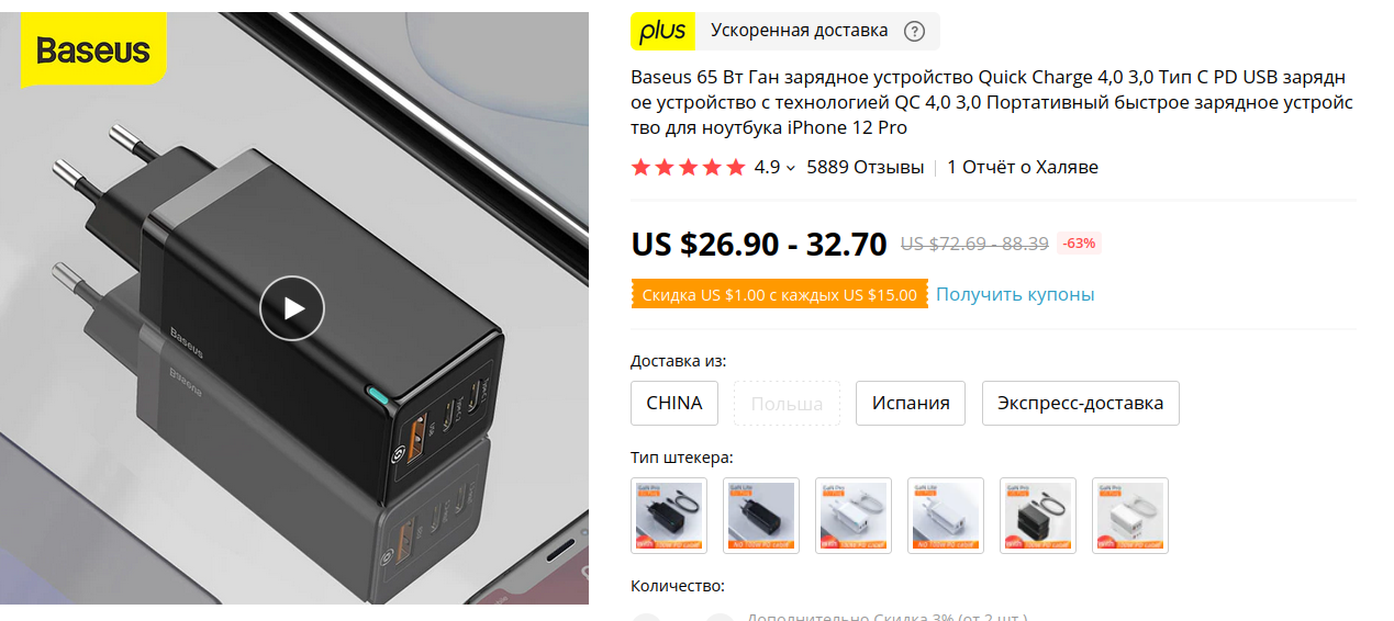 Кто нибудь видел тонкие зарядники с PD от 60вт?