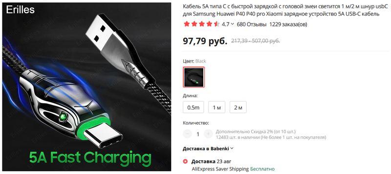 UPD: слушайте, какая прелесть! Ну КАК они это делают? Змеиный кабель любой длины 98р, но как только пытаешься купить - 130-303 в зависимости от размера...
