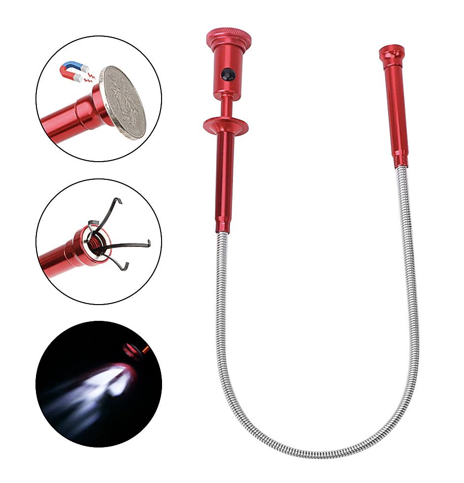 Длина хваталки около 62см, на конце есть магнит и фонарик. Единственное я не понял как там заряжается аккумулятор, но если сядет, то буду использовать даже и без него.
