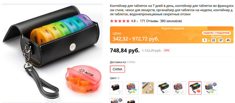 Вынуждены принимать немало таблеток (как я вас понимаю) и не можете запомнить, какие когда, - поможет комплект из семи контейнеров для таблеток на всю неделю. Есть разные виды оформления чехла для этих контейнеров. В воскресенье зарядили таблетки на всю неделю - и принимаете себе, что полагается и когда полагается.