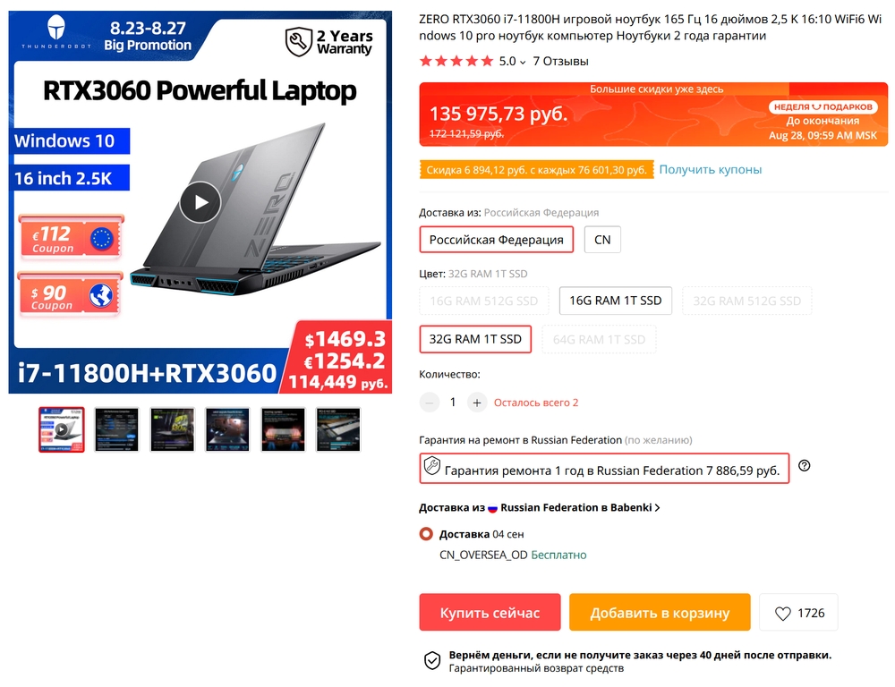 UPD: Они еще дают приличный купон на скидку в 6894 руб. на заказ от 76600 руб.
