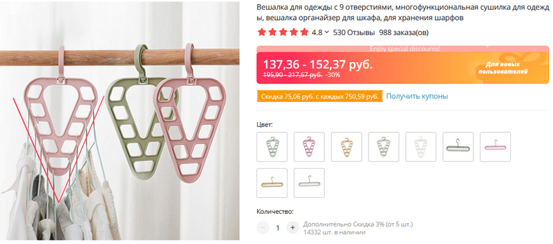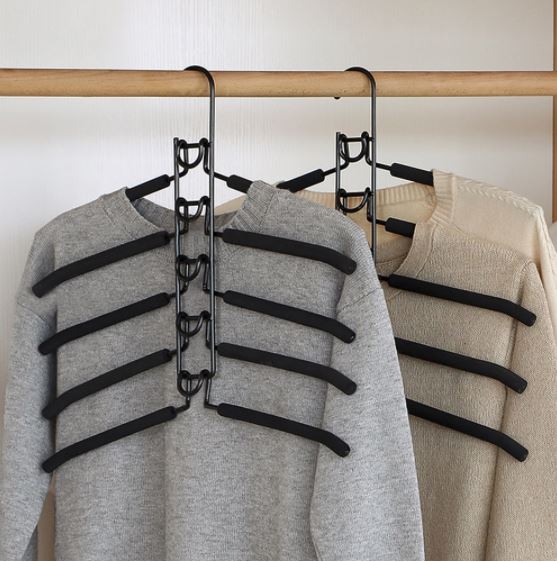 Простенькая, но очень полезная штука - экономит место в небольших платяных шкафах. С ее помощью можно значительно уменьшить место, которое в шкафу занимает одежда на вешалках. И там их два вида. Но треугольный вариант, на мой взгляд, интереснее.