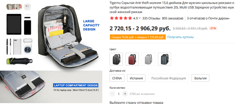 Водонепроницаемый рюкзак, в который влезает ноутбук 15,6". Защита от воров, скрытая молния, потайные карманы, четыре варианта цвета, порт для зарядки.