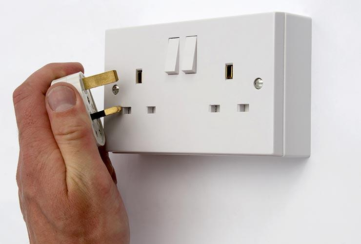 Если не воткнуть штепсель до конца, сбоку есть возможность каким нибудь предметом дотронуться до контактов.