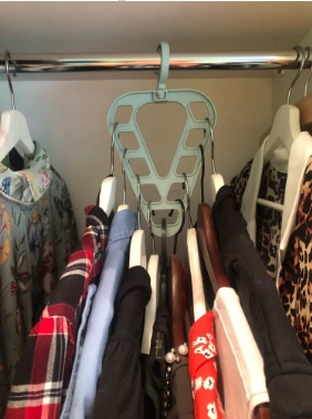 К вешалкам, экономящим место в платяном шкафу, я бы еще добавила такой вариант. Очень классные вешалки, действительно позволяющие оптимизировать пространство в шкафу. Все детские вещи давно так висят, наши с мужем тоже скоро будут))