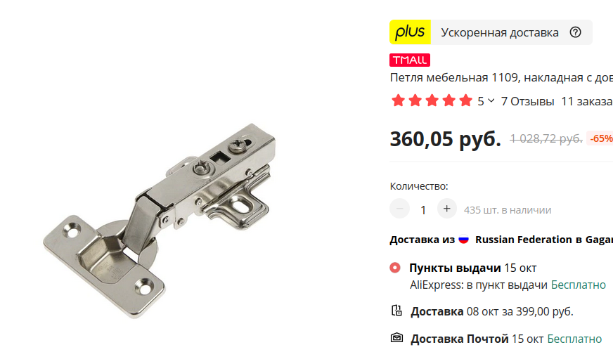 Не так уж и дёшево. Как раз неделю назад сломалась петля в кухонном шкафу, пошёл в местный мебельно-фурнитурный магазин, там петли Боярд от 50р без доводчиков до 100р с доводчиками. За штуку. Конечно, если нужно пару-тройку десятков петель на всю мебель, то, может, и имеет смысл. Или у этих петель качество лучше, чем у Боярда?