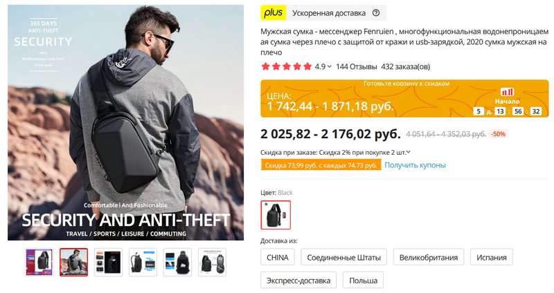 - Купоном продавца (берется на странице с товаром) – 73,99 руб.