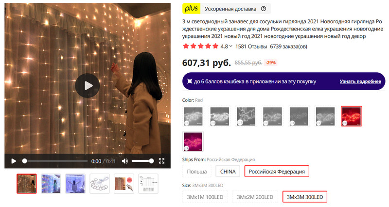 Писал я о новогодней гирлянде-занавесе, которую купил в "Амазоне". Читатели тут же нашли такую же на Aliexpress. Есть доставка с российского склада (там, правда, только два варианта цветов), так что все успеет приехать для украшения дома перед НГ.