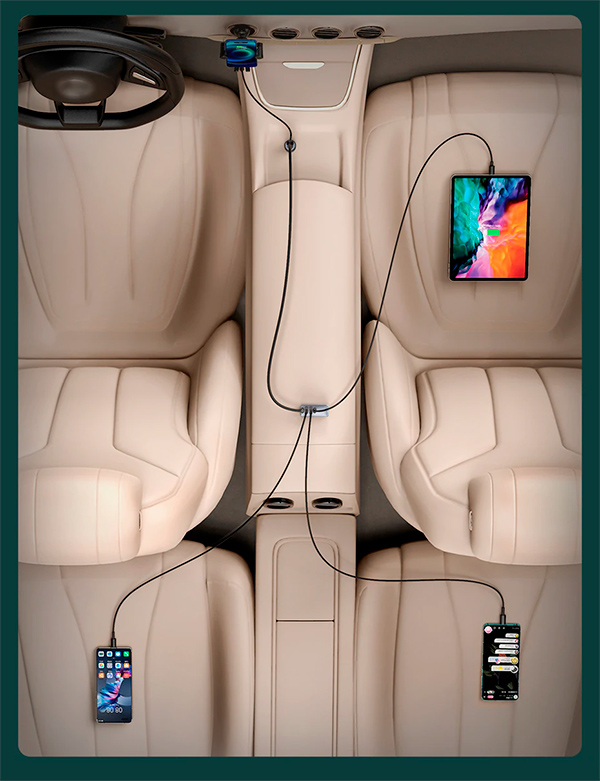 С вами в машине ездят другие члены семьи, для смартфонов/планшетов которых вечно не хватает свободного порта для зарядки? Вот решение - автомобильный зарядный хаб с поддержкой мощности 120 ватт: на выбор - три порта USB-A и один порт USB-C или же два USB-A и два USB-C - хватит на всех.