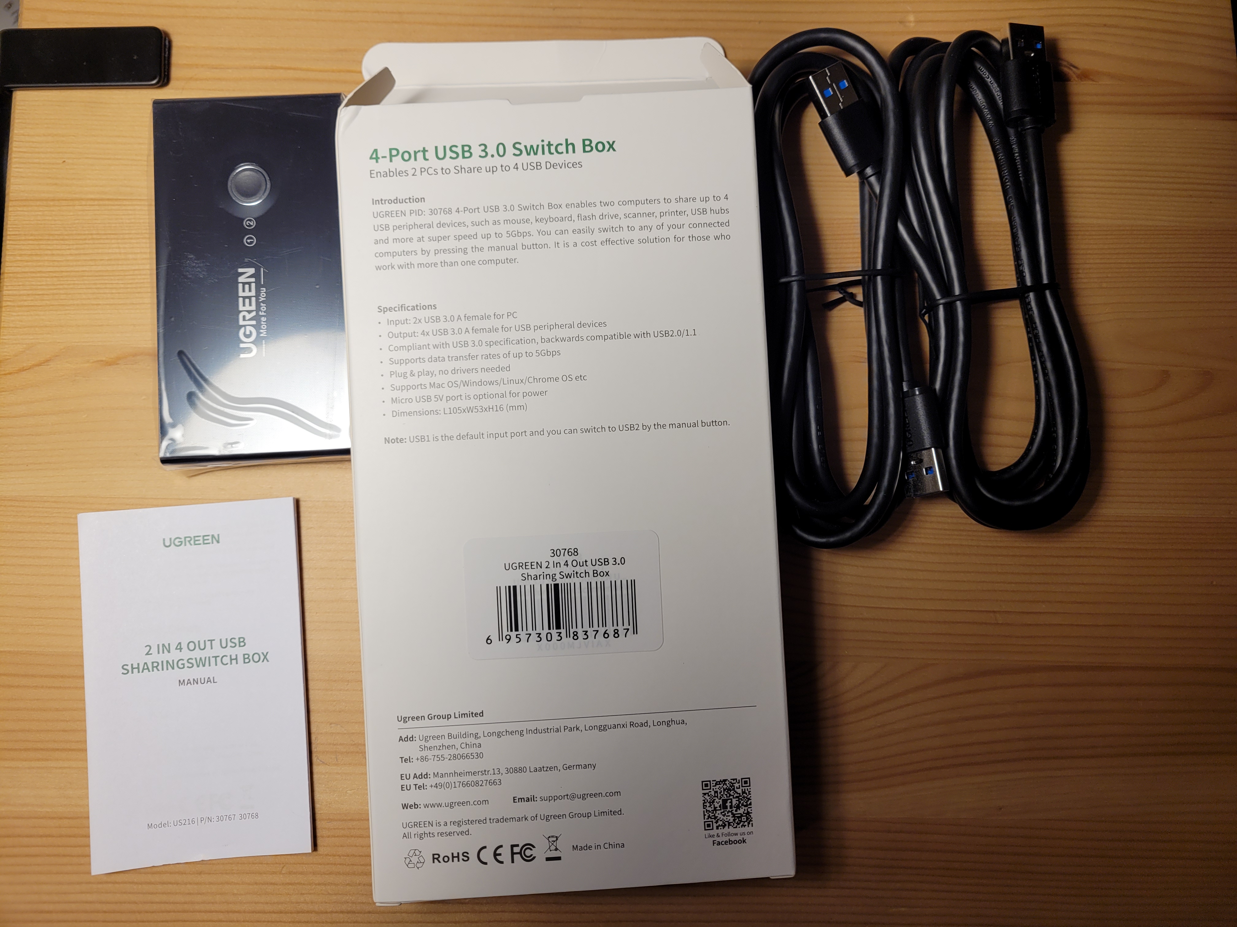 Приехал за 4 дня (в Москву). Очень понравился. Порты плотно держат (у прошлого, от другой фирмы, клавиатура теряла соединение из-за расхлябанного разъёма). Кнопка удобная (чуть выступает - удобно жать). Диод светит не так ярко (прошлый приходилось закрывать, так ярко ночью светил). В комплекте 2 толстеньких хороших 1.5 метровых кабеля. Брал за 1350 вариант usb 3.0.