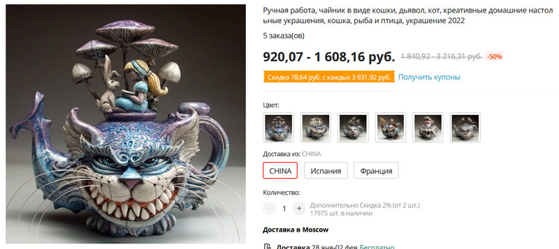 Вот это меня очень прикололо - заказал себе: забавный чайник. Обычно такие хрупкие штуки доезжают без проблем, они их хорошо упаковывают, мне уже сколько всякой посуды с Ali приехало.