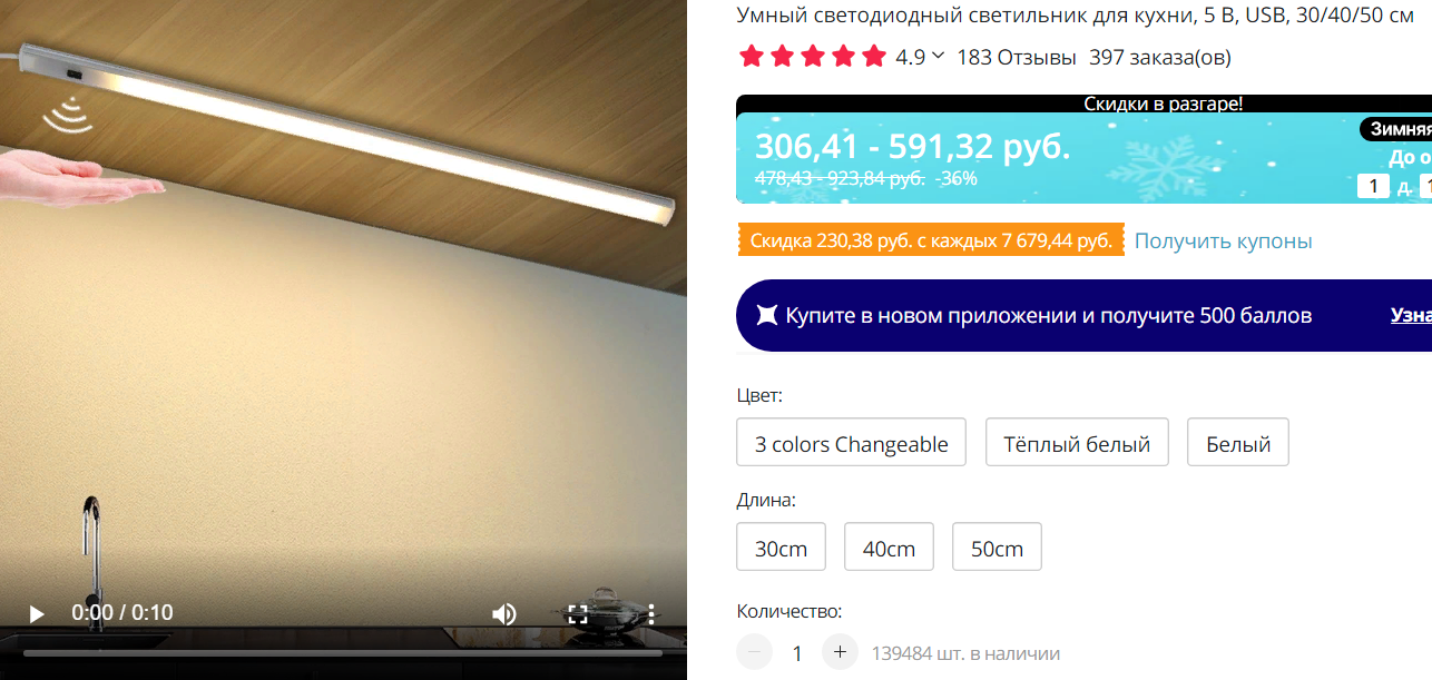 А я себе взял более дешёвый noname. Называется Умный светодиодный светильник с датчиком движения рук, 5В, питание от USB, светильник высокой яркости для шкафа, гардероба, ящика, 30/40/50 см