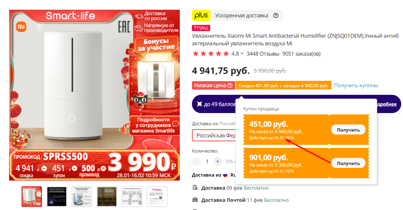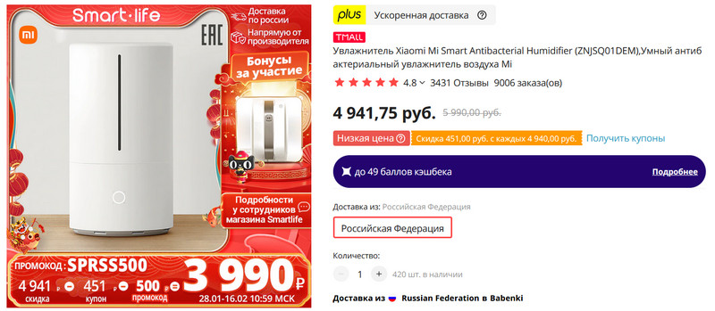 С купоном продавца и промокодом SPRSS500 цена упадет до 3990 рублей.