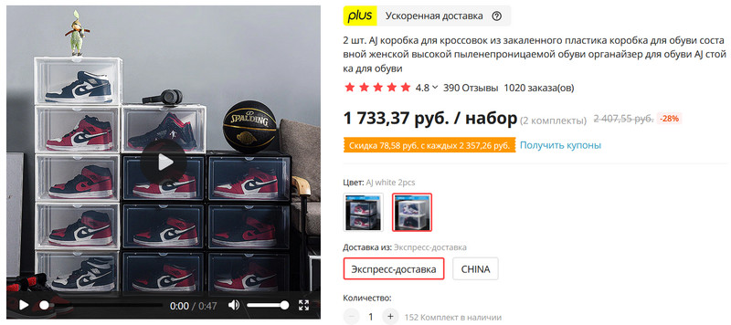 Как то дороговато за 2 шт 1700, но выглядят хорошо, задумался о замене коробок для обуви на прозрачные пластмассовые, но надо штук 30 на всю семью,