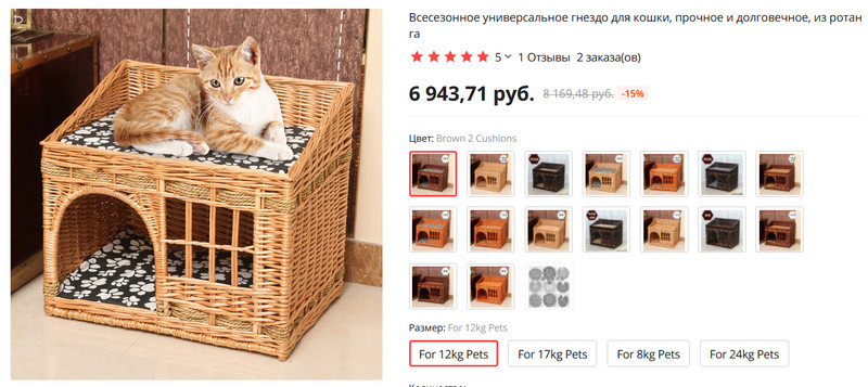 Я, конечно, не мог пройти мимо такой прелести - смотрите какие симпатичные кошачьи домики из ротанга. Разных расцветок и разных размеров.