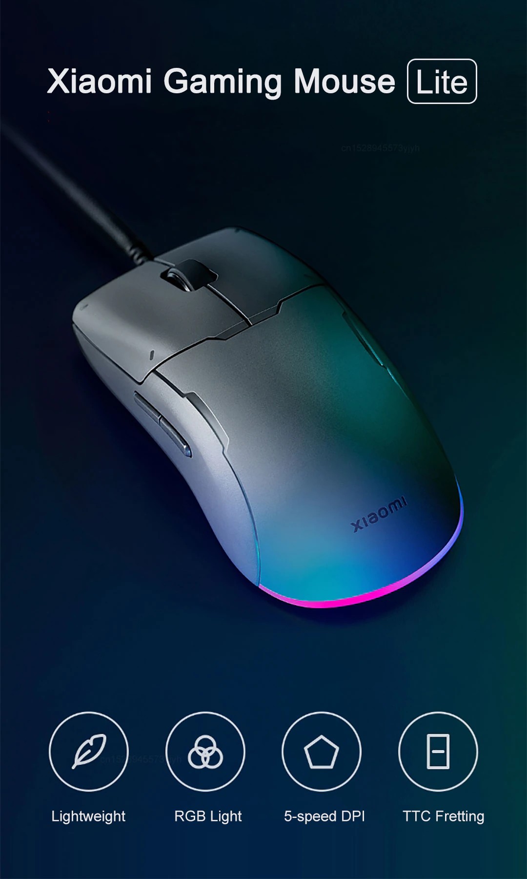 Игровая мышь Xiaomi. Быстрый отклик 1 мс, боковые клавиши, долговечные переключатели (80 миллионов нажатий), регулировка DPI (пять режимов) и подсветки (три режима).