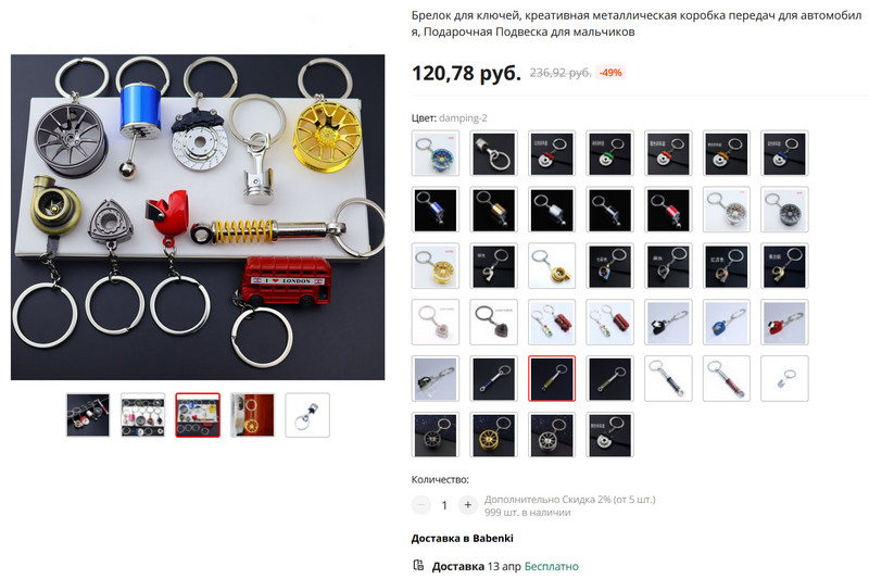 Большой выбор креативных брелоков (и брелков тоже) для ключей с автомобильной тематикой. Тут самое главное - с бесплатной доставкой, а то я такое еле нашел - у всех доставка порядка 111-140 рублей, и это за каждую штучку, что уже накладно. У меня Юный Каталан - фанат таких штук, да и я сам люблю навесить на ключи тормозной диск, гудок или амортизатор, так что здесь есть где разгуляться.