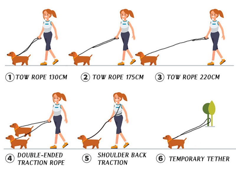 Длина поводка - 2,3 метра, что позволяет с помощью изменения размера петли гибко регулировать расстояние до питомца.