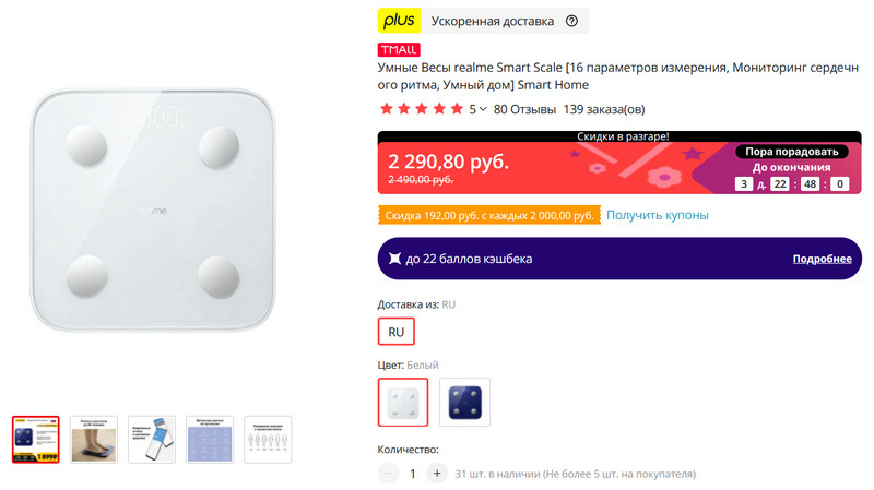 Новые умные весы Realme Smart Scale с хорошей скидкой и доставкой с российского склада.