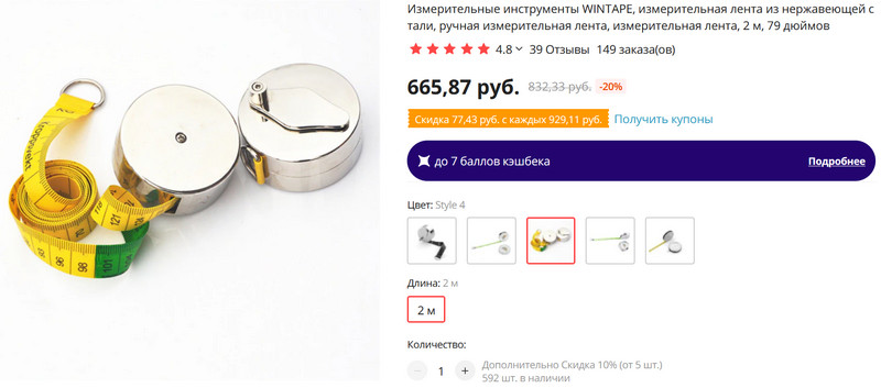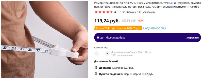 Нет, конечно, можно совсем обнаглеть и поискать сантиметр с дисплеем, который еще и умеет заливать данные в приложение на смартфоне - типа такого. (На Ali я, правда, такой не нашел, нашел только на "Амазоне".) Однако такие себе обычно культуристы и фанаты фитнеса покупают - замерять раздувавшиеся мышцы, а я сколько раз измеряю поясницу, плечи и отсутствующую талию? Два раза в год? Так что не надо мне этого овертехнопрогрессинга, обойдусь тем сантиметром, который привел выше.